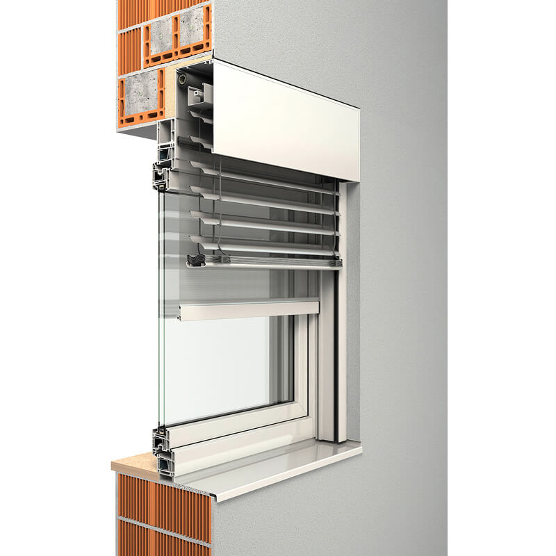 Sie wollen alle Vorteile eines Vorbausystems und die eines klassischen Fassadenraffstores gleichzeitig?
